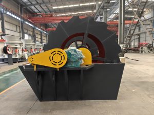 XSD series sand washing machine with its wheel-like structure is the necessary equipment used with sand making machine. It can wash stone powder and residual away from the mostly, so as to improve sand quality . XSD sand washing machine adopts advanced technology, takes the sand industry’s practical condition into consideration, has the features like high clean ratio,technical structure, high capacity, low power cost and less loss of fine sand. Especially the well-designed structure makes transmission part isolated from water and sand, so the malfunction is reduced enormously. So this sand washing machine is the best choice for product’s updating and upgrading